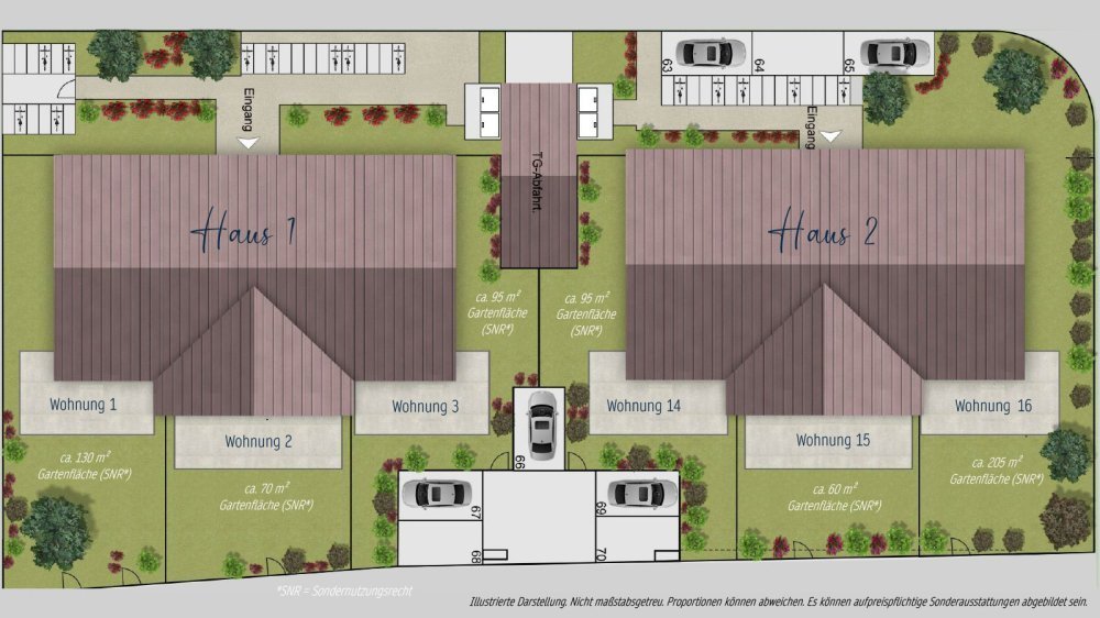 - Hochwertige Ausführung und Gestaltung der Außenanlagen, sowie der PKW- und Fahrrad-Stellplätze