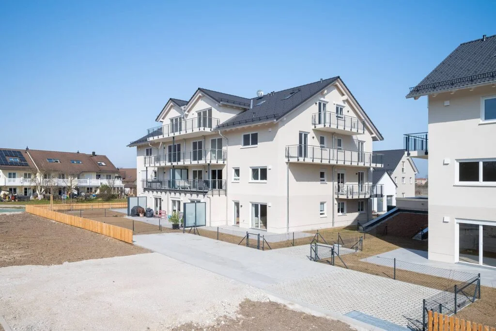 In schöner Lage an der Pfarrstraße entsteht unser neues Projekt mit insgesamt 26 hochwertigen und familienfreundlichen Eigentumswohnungen, verteilt auf zwei Gebäude. Eine Tiefgarage mit insgesamt 36 Stellplätzen wird die beiden Häuser im Untergeschoss verbinden. Die in schöner Ortsrandlage entstehende Wohnanlage wird über den neu zu errichtenden „Bürgermeister-Krug-Weg“, einer reinen Anwohnerstraße, erschlossen.